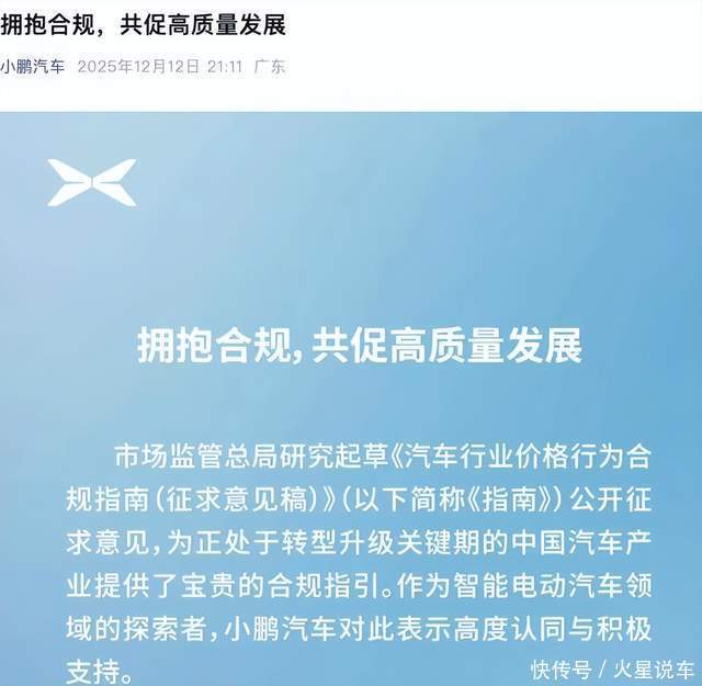 此次事件让消费者更为担忧,当产品出现可能引发大规模召回的质量缺陷或存在配置变更时,公司的第一反应似乎并非主动、透明地向用户和市场沟通,而是倾向于采取各种方式淡化、隐瞒或被动处理。讽刺的是,就在2025年12月,小鹏汽车还曾发布声明,表示将“坚决杜绝任何形式的价格欺诈与不正当竞争行为”。前后言行的反差,让小鹏的诚意大打折扣。