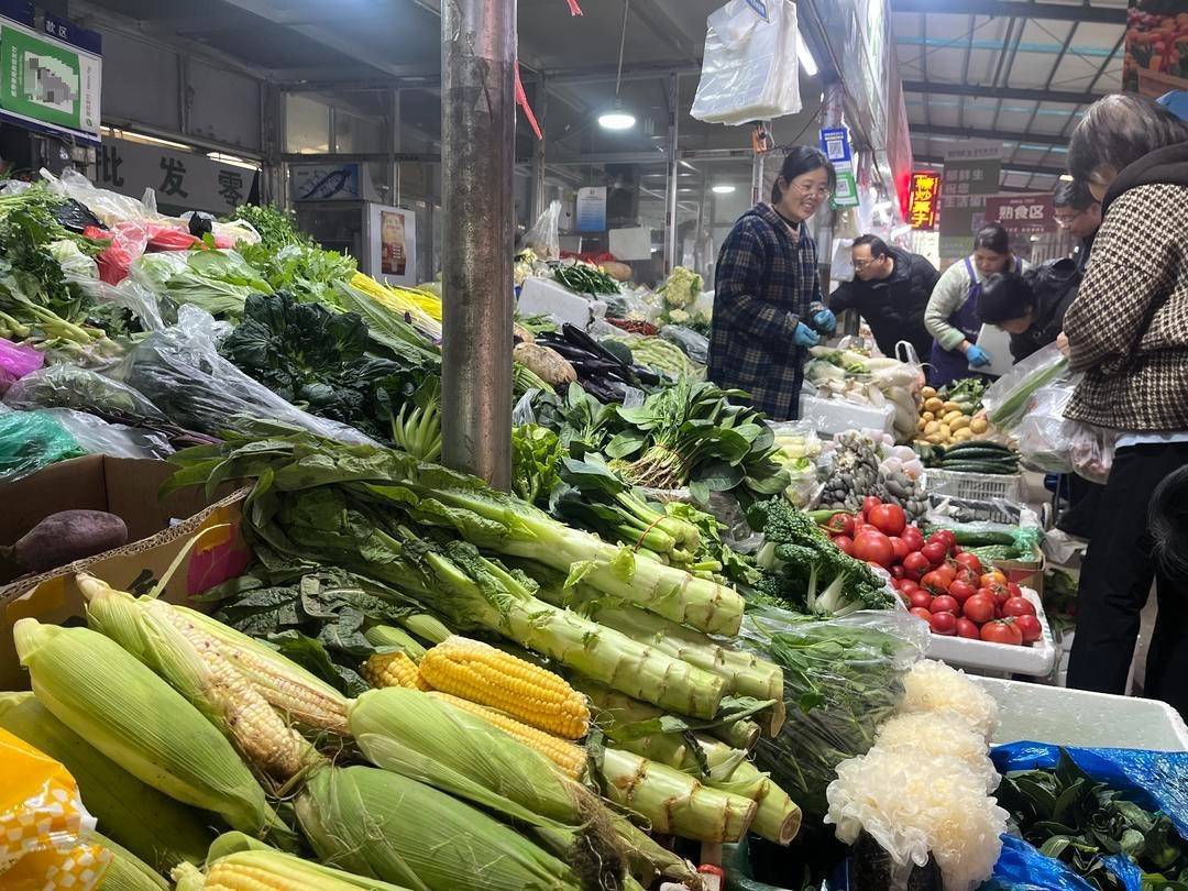在大观苑农贸市场,肉类、禽蛋、水产等区域同样供应充足。从事猪肉销售的李先生表示,降雪后气温下降,市民对肉类的需求略有增加,但供应充足,价格未出现明显波动。“这次降雪量对交通基本没啥影响,肉类的价格也和前几天持平。”一早前来采买的市民表示,虽然天气变冷,但买菜购物未受影响。“本以为下雪后菜价会涨,但今天来市场一看,价格和平时差不多,品种也很齐全,心里就踏实了。”市民刘女士说。