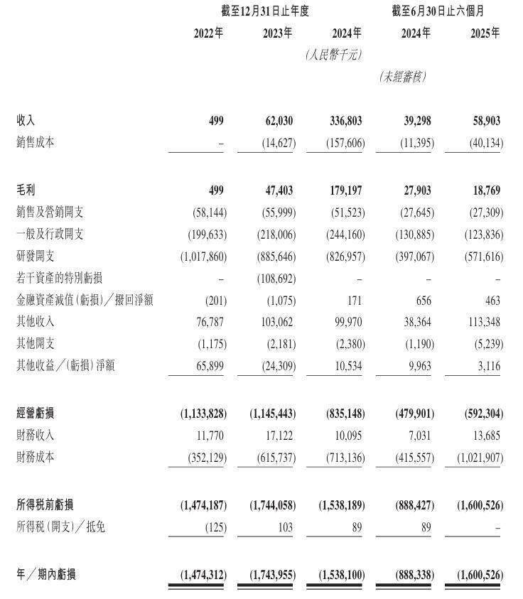 财务数据显示,壁仞科技2022年至2024年实现收入49.9万元、6203万元、3.37亿元,期内亏损14.74亿元、17.44亿元、15.38亿元。