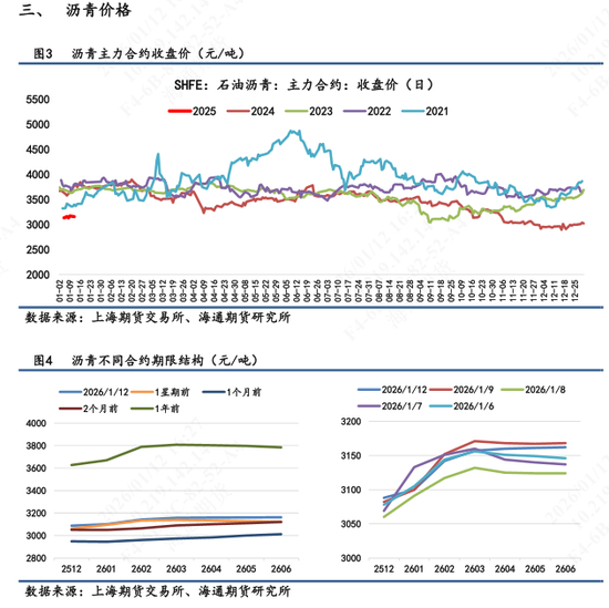 【2】现货市场:①山东重交沥青市场价为3080元/吨,环比持平,7天累计+4.4%。山东基差为-77元/吨,7天累计+21元/吨。②华东重交沥青市场价为3190元/吨,环比持平。华东基差为+33元/吨,7天累计-19元/吨。